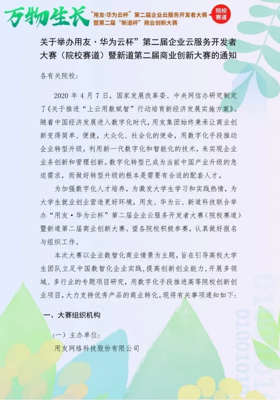 赛事通知|“用友·华为云杯”第二届企业云服务开发者大赛(院校赛道)暨新道第二届商业创新大赛