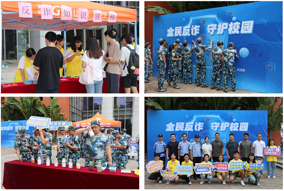 期间,学校保卫处、学生处、团委联合太平经济技术开发区派出所举办“全民反诈 守护校园”活动,派出所民警和学校平安志愿者在图书馆广场开展反诈防“毒”知识宣传。
